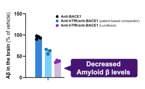 Lundbeck has demonstrated that the genO-hTFRC model can be used to assess the efficacy of antibodies that target proteins expressed in brain cells, such as BACE1.